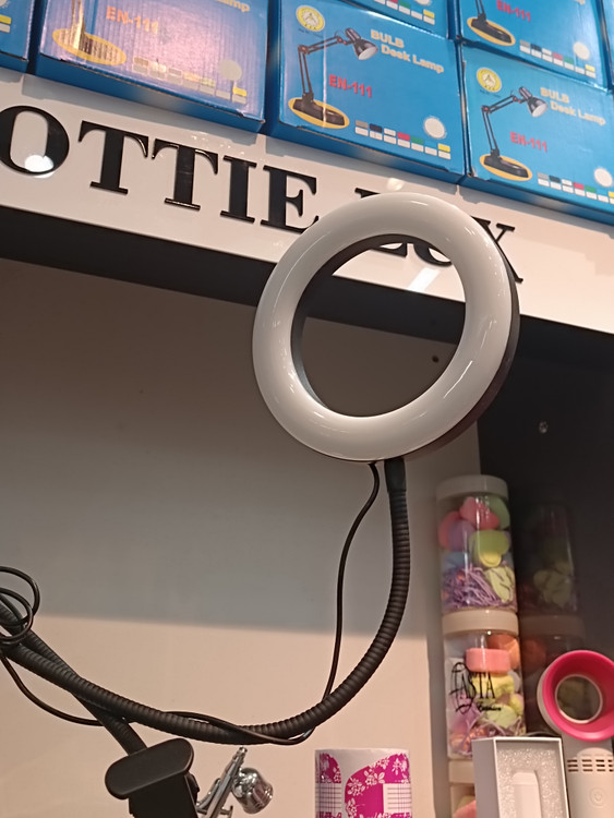 رینگ لایت روی یک بازوی فنری به طول ۶۵ سانتیمتر قرار گرفته است. و کاربر براحتی قادر به تنظیم رینگ لایت در زاویه مناسب جهت استفاده از نور آن میباشد.