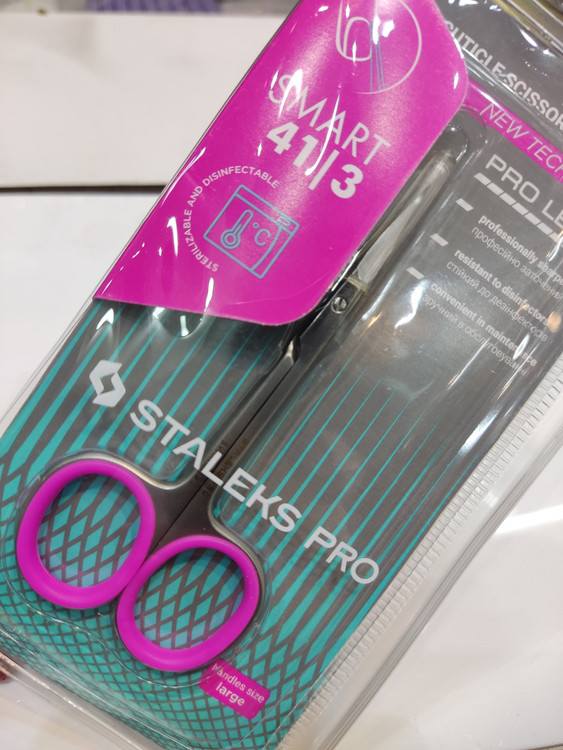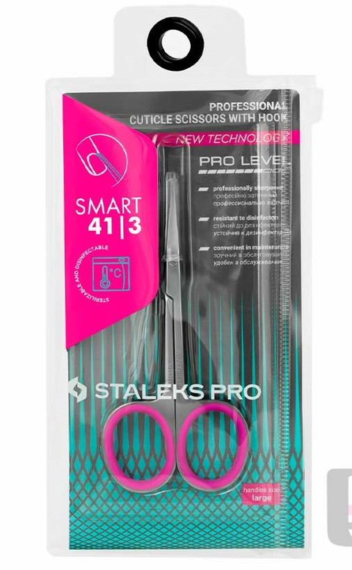 قیچی مانیکور استالکس Staleks Smart SS-41.3 از سری قیچی های مانیکور حرفه ای استالکس است. سری اسمارت استالکس دارای یک فناوری جدید تولید است که به لطف آن نازک ترین و قدرتمند ترین تیغه ها تولید می شود. این محصول دارای دسته های خوش دست است که به استفاده ی راحت تر از آن کمک می کند. در این مدل از قیچی های استالکس حلقه های سبلیکونی تعبیه شده است که به لطف آنها قیچی در دست ثابت می شود. همچنین اندازه ی این حلقه ها کاملا استاندارد نیز می باشند و حالتی ارگونومیک دارند. این حلقه های سیلیکونی در برابر حرارت مقاوم هستند و می توانید قیچی مانیکور را به راحتی ضدعفونی و استرلیزه کرد.