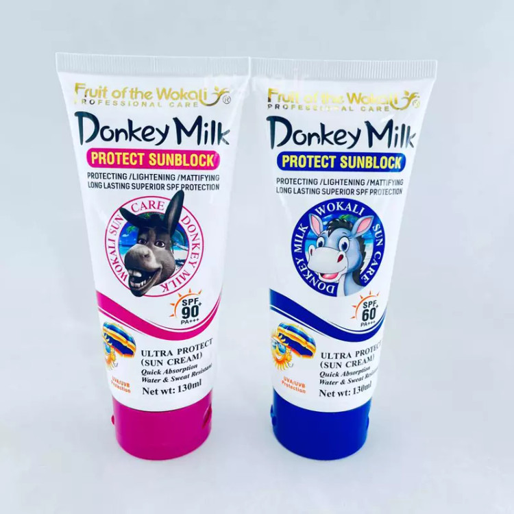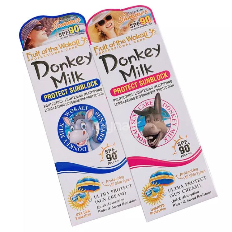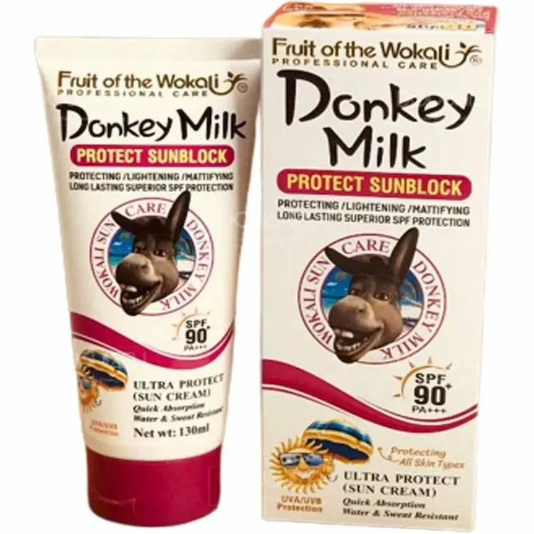 کرم ضد آفتاب بی رنگ شیر الاغ 130 میل SPF 90 (خر) وکالی Donkey Milk Wokali