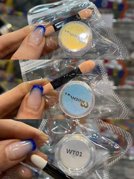 پودر کروم جواهری دیزاین ناخن 3 طیف رنگ درجه یک کد های cm04-wt01-cm12