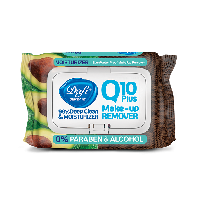 دستمال مرطوب پاک کننده آرایش مدل MOISTURIZER آووکادو سری Q10 درب دار 50 عددی ضد چروک دافی Dafi