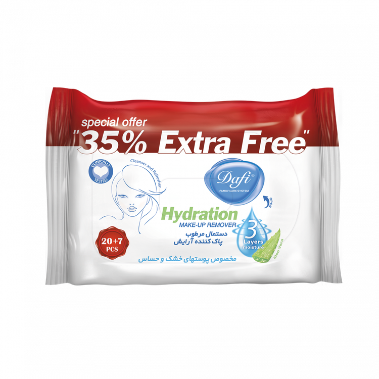 یکی از راههای مراقبت از پوست و داشتن پوستی زیبا و شفاف، پاک کردن آن از مواد آرایشی و آلودگیهای روزمره است. دستمال مرطوب پاککننده آرایش دافی یک پاککننده مواد آرایشی ضد آب، مرطوبکننده و تغذیهکننده پوست بوده و به همین جهت نام آن را سه در یک اختصاص دادهاند. این محصول حاوی مواد مغذی، عصارههای آلوئهورا، بابونه، لیمو و خیار بوده که سبب حفظ لطافت و شفافیت پوست میشوند. از نکات بسیار مثبت در تولید این دستمال معطر میتوان به فاقد الکل، پارابن و صابون بودن آن نیز اشاره کرد.