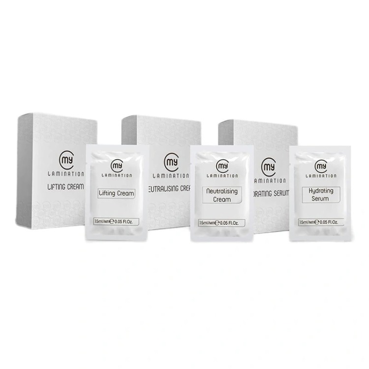مواد مای لمینیشن (My Lamination) شامل محصولاتی تخصصی برای لیفت و لمینیت مژه و ابرو است که با هدف بهبود ظاهر طبیعی مژهها و ابروها طراحی شدهاند. این مواد به ویژه برای تقویت، حجمدهی و حالت دادن به مژهها و ابروها بدون نیاز به استفاده از مژههای مصنوعی یا محصولات دیگر استفاده میشوند. محصولات موجود در تصویر شامل کرم لیفت، کرم خنثیکننده و سرم آبرسان هستند که مراحل مختلف لیفت و لمینیت را پوشش میدهند. در ادامه توضیح کامل هر یک از این مواد ارائه شده است: