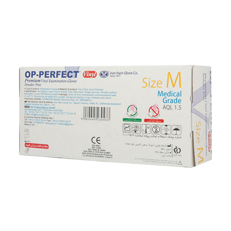 ویژگی های دستکش وینیل Op-Perfect اوپی پرفکت 100 عددی بدون پودر: