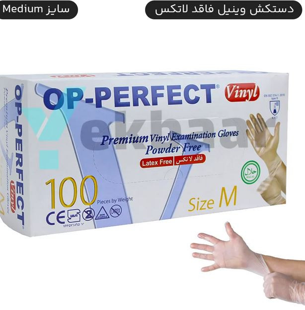 دستکش ونیل بی رنگ 100 عددی اوپی پرفکت OP-Perfect سایز مدیوم M