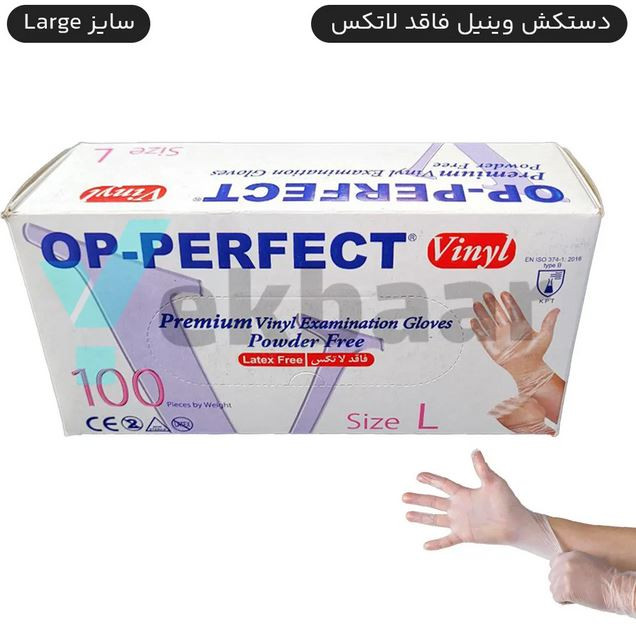 دستکش ونیل بی رنگ 100 عددی اوپی پرفکت OP-Perfect سایز لارج L