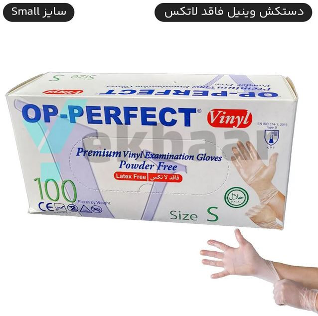دستکش ونیل بی رنگ 100 عددی اوپی پرفکت OP-Perfect سایز اسمال S