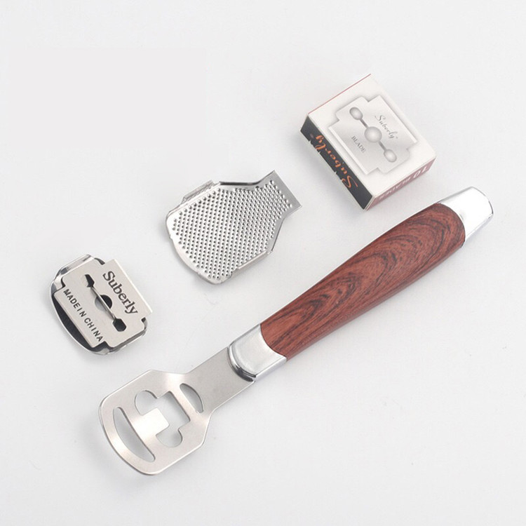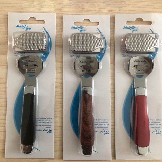 دسته تیغ پدیکور با رنده، یک ابزار تخصصی است که برای برداشتن پینه های کف پا و سلول های مرده پوست به کار می رود. این ابزار شامل یک دسته (معمولاً پلاستیکی یا فلزی) است که به آن تیغ های قابل تعویض یا رنده متصل می شود. تیغ ها برای پینه های سخت و عمیق، و رنده برای پینه های سطحی و ملایم استفاده می شوند.