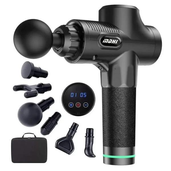 این ماساژور تفنگی MDHL بی سیم و سبک، دارای نمایشگر دیجیتال LED با کلید لمسی برای تنظیم سرعت میباشد و کاربرد آن برای رهایی از خستگی عضلانی بسیار موثر است و دارای 6 نوع سری مختلف میباشد که یک تجربه ماساژ آرامش بخش را بوجود می آورد و باعث کاهش دردو آسیب های استخوانی میگردد.به رفع درد و سفتی عضلات کمک می کند و دامنه حرکت را بهبود و همچنین گردش خون را ارتقا می بخشد و باعث تسریع در گرم شدن و بهبودی عضلات می گردد. وباعث کاهش درد عضلانی بعد از تمرین های سخت وفشرده ورزشی برای ورزشکاران میگردد .
