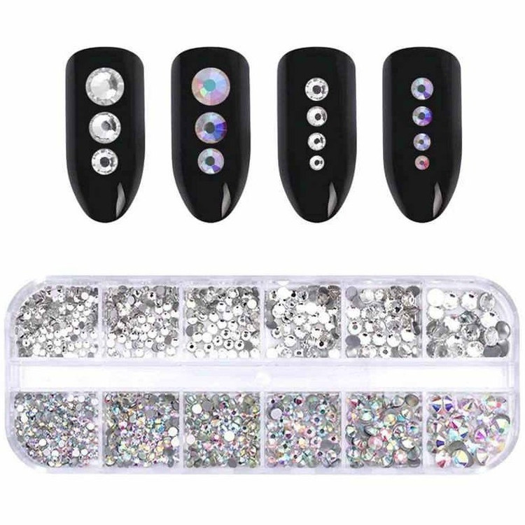 پک 12 عددی دیزاین ناخن نگین ریز طرح سواروسکی