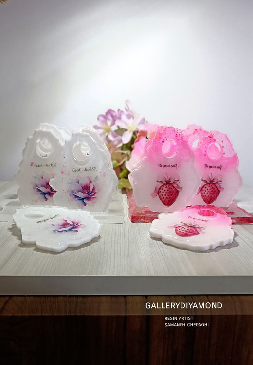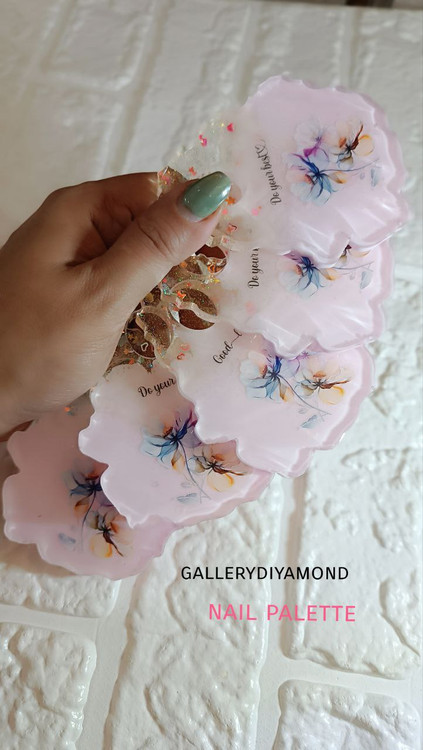 پالت رزینی گرد (سینی) ترکیب رنگ متوسط 10 سانتی جا انگشت دار زمینه سفید طراحی ناخن