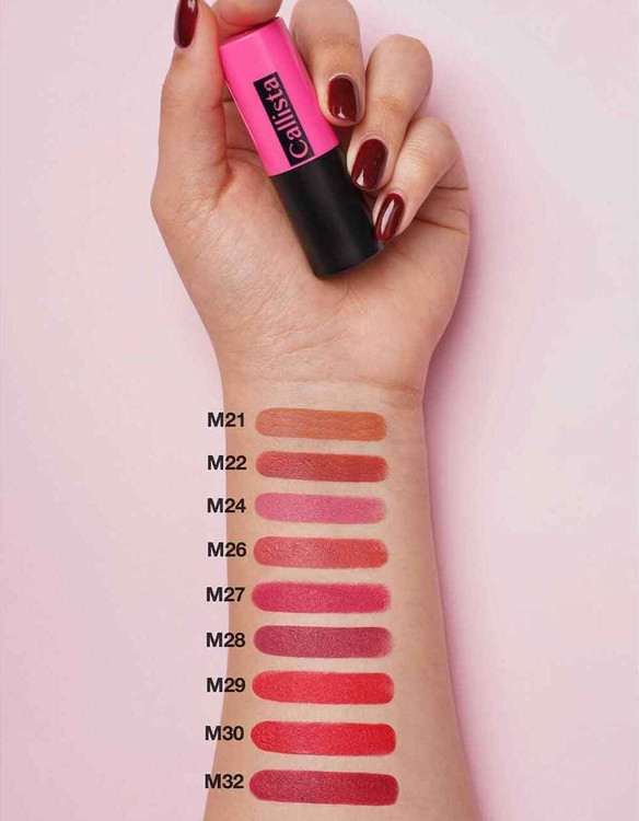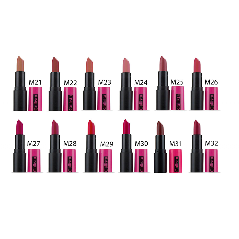- آنچه رژ لب جامد مات کالیستا را از محصولات مشابه در بازار متمایز کرده، بهرهگیری از ویتامینها و تنوع رنگی محصولات آن است که در ۱۲ رنگ دلنشین و به همراه رایحهای خوش عرضه شده است.