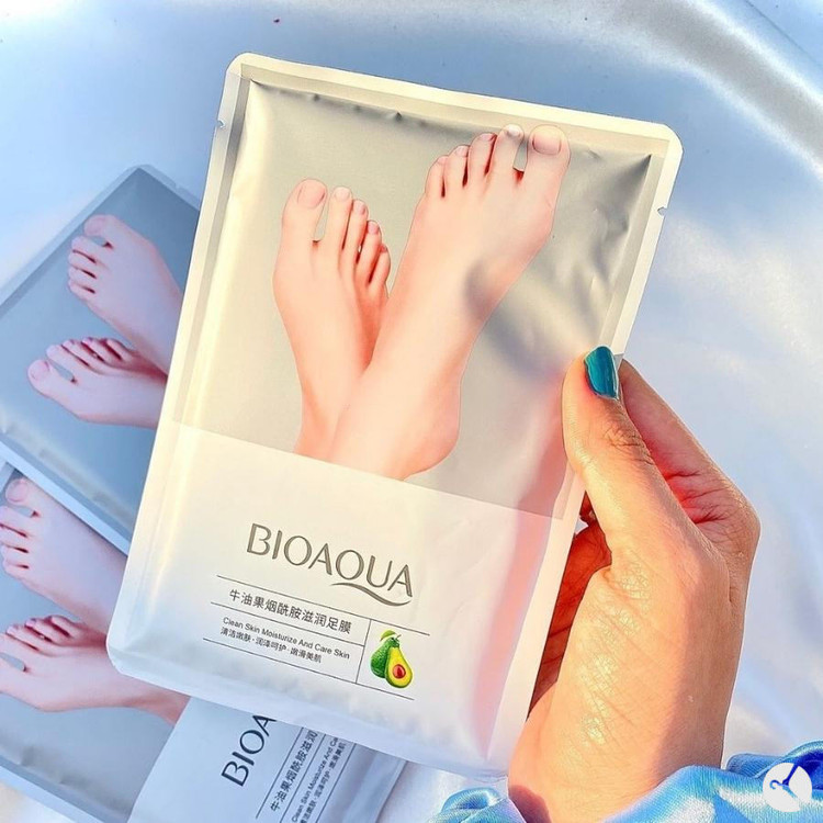 ۱٫ پاهای خود را شسته و سپس خشک نمایید و داخل این ماسک های جورابی قرار دهید .