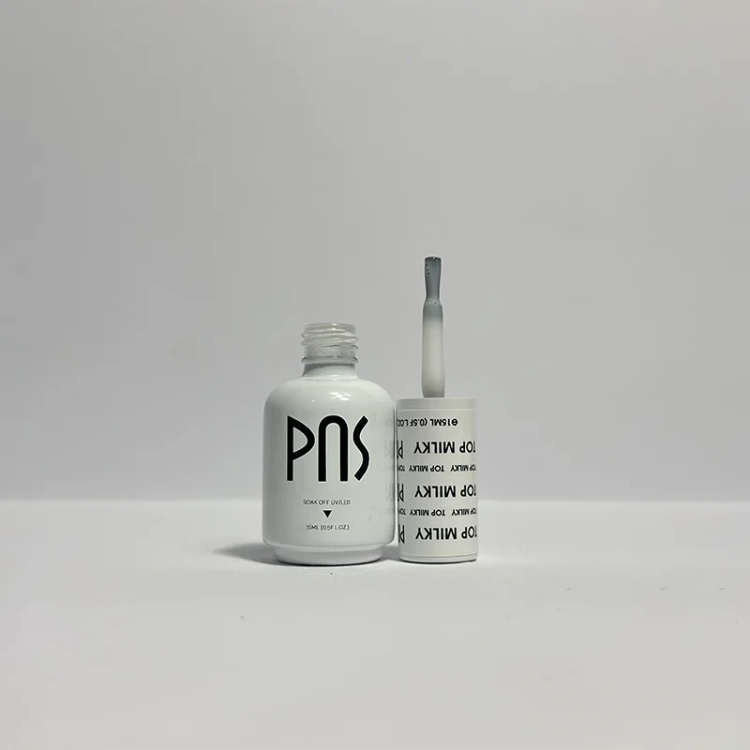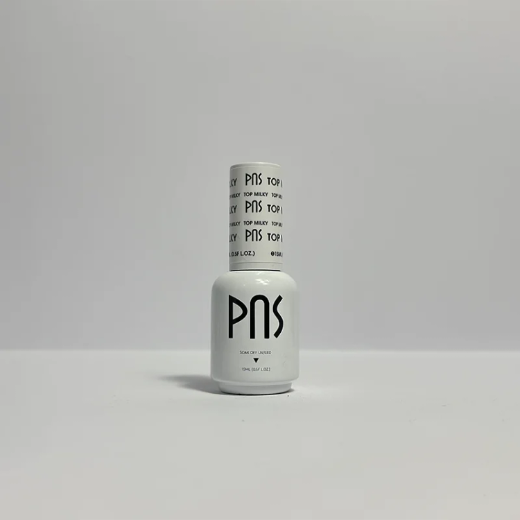 تاپ شیری پی ان اس این محصول در واقع نوعی تاپ کات است با این تفاوت که از رنگ شیری برخوردار است. پیگمنت بسیار ملایمی دارد از غلظت و سختی بالایی برخوردار است به ماندگاری خدمات زیبایی ناخن کمک میکند دارای غلظت مناسب و بافت یکدست.
