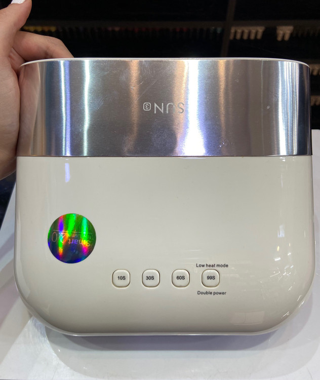 دستگاه ال ای دی یو وی سان 3 دارای شکل ظاهری بسیار زیبایی بوده و از کیفیت ساخت بالایی نیز برخوردار است، میتوان گفت که SUN3 زیبایی خاصی به میز کار شما خواهد بخشید. در پشت دستگاه سوگت اتصال کابل برق مشاهده می شود. دستگاه دارای 36 عدد لامپ ترکیبی یو وی ال ای دی بوده که قدرت 48 وات را فراهم می نماید. روی دستگاه 4 دکمه تایمر 10/30/60/99 ثانیه تعبیه شده که در ادامه به کارکرد آن ها خواهیم پرداخت، یک صفحه نمایش زیبای بزرگ نیز بر روی دستگاه سان 3 مشاهده می شود. سینی دستگاه ال ای دی یو وی سان 3 به صورت کشویی جدا شده و راحتی کار برای دست و پا و تمیز کردن دستگاه را فراهم می نماید.