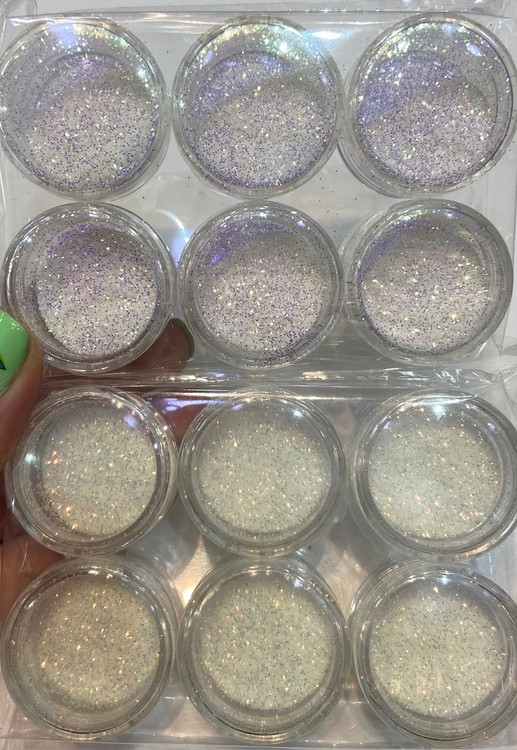اکلیل های موجود در این پودر جلوه و درخشش بسیار زیبایی به ناخن ها می بخشد.