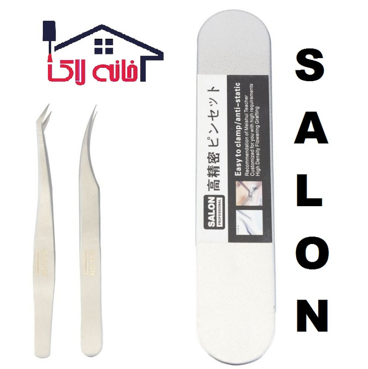 پنس / انبر 2تایی اکستنشن مژه سرکج و سرصاف حرفه ای سالن Salon